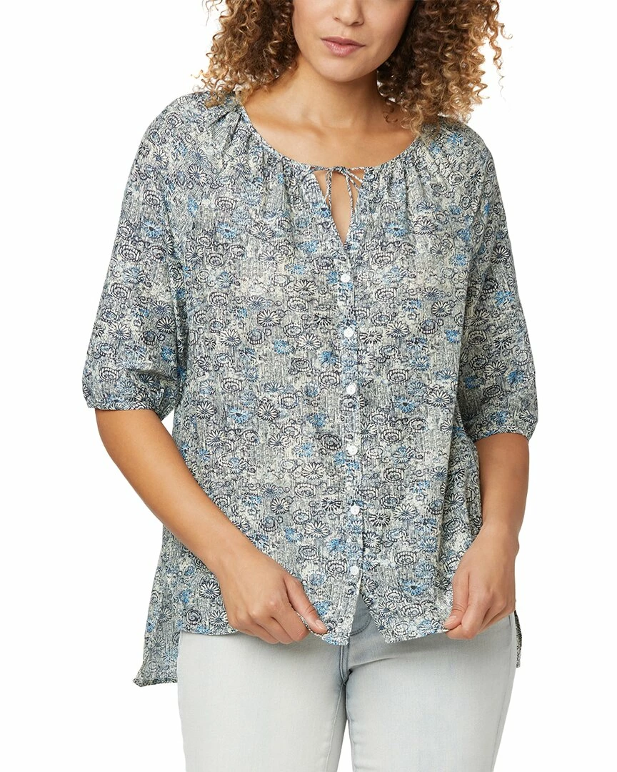 NYDJ Button Down Silk-Blend Peasant Blouse Women Sweaters & Knits