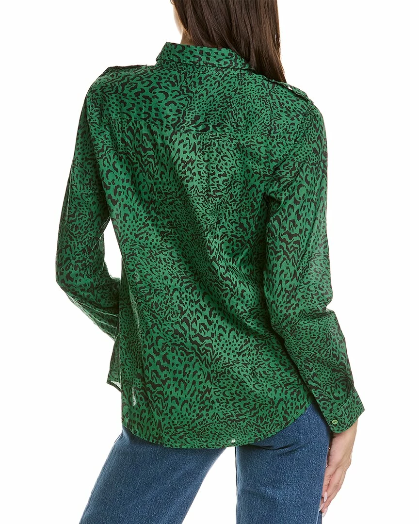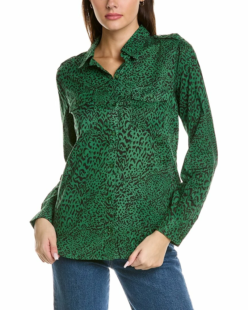 - Camila Shirt in Saville jaguar with dual chest pockets, barrel cuffs, and shirttail hem