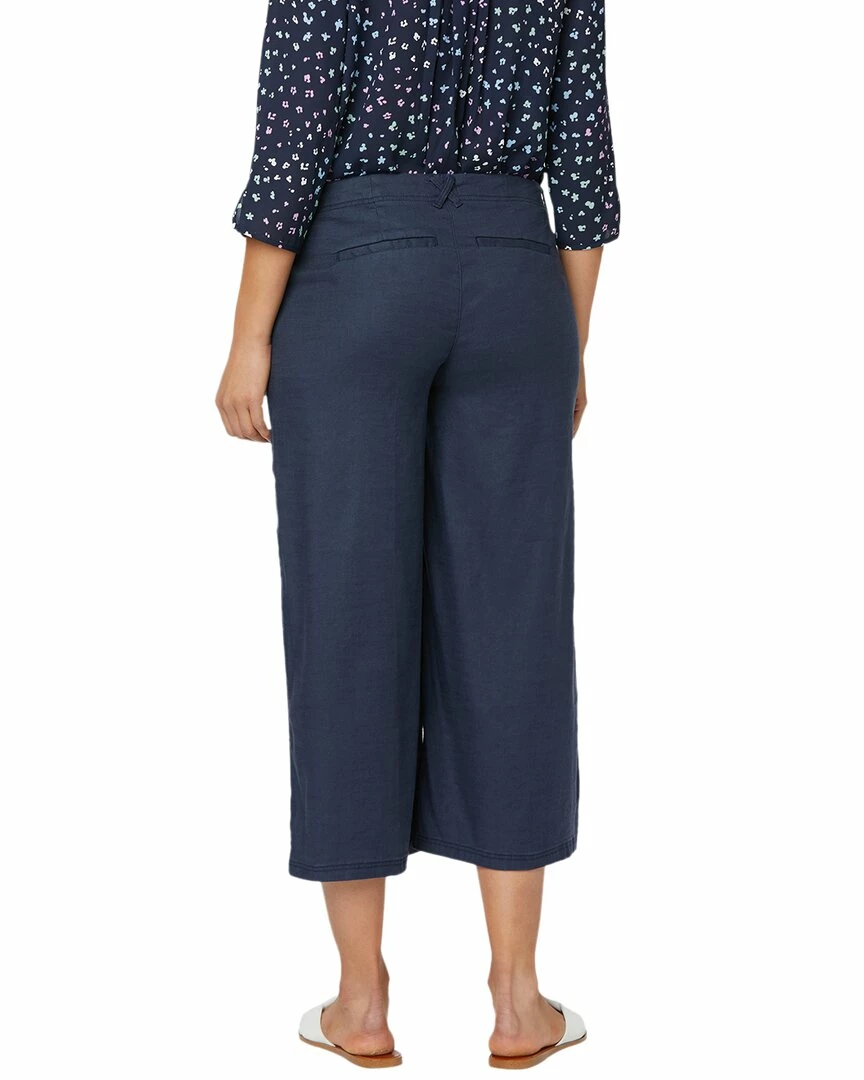 - Linen-Blend Cropped Wide Leg Pant in oxford navy