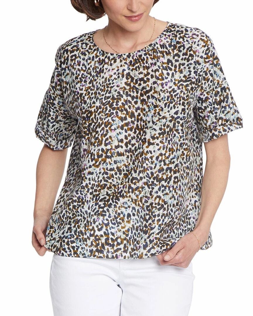 - Oversized Silk-Blend T-Shirt in glia leopard
