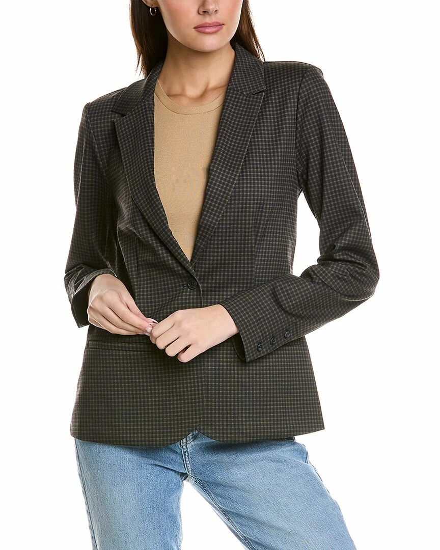 - Ponte Blazer in Watkins check with notch lapel, two front pockets, and non-functional buttons at cuffs