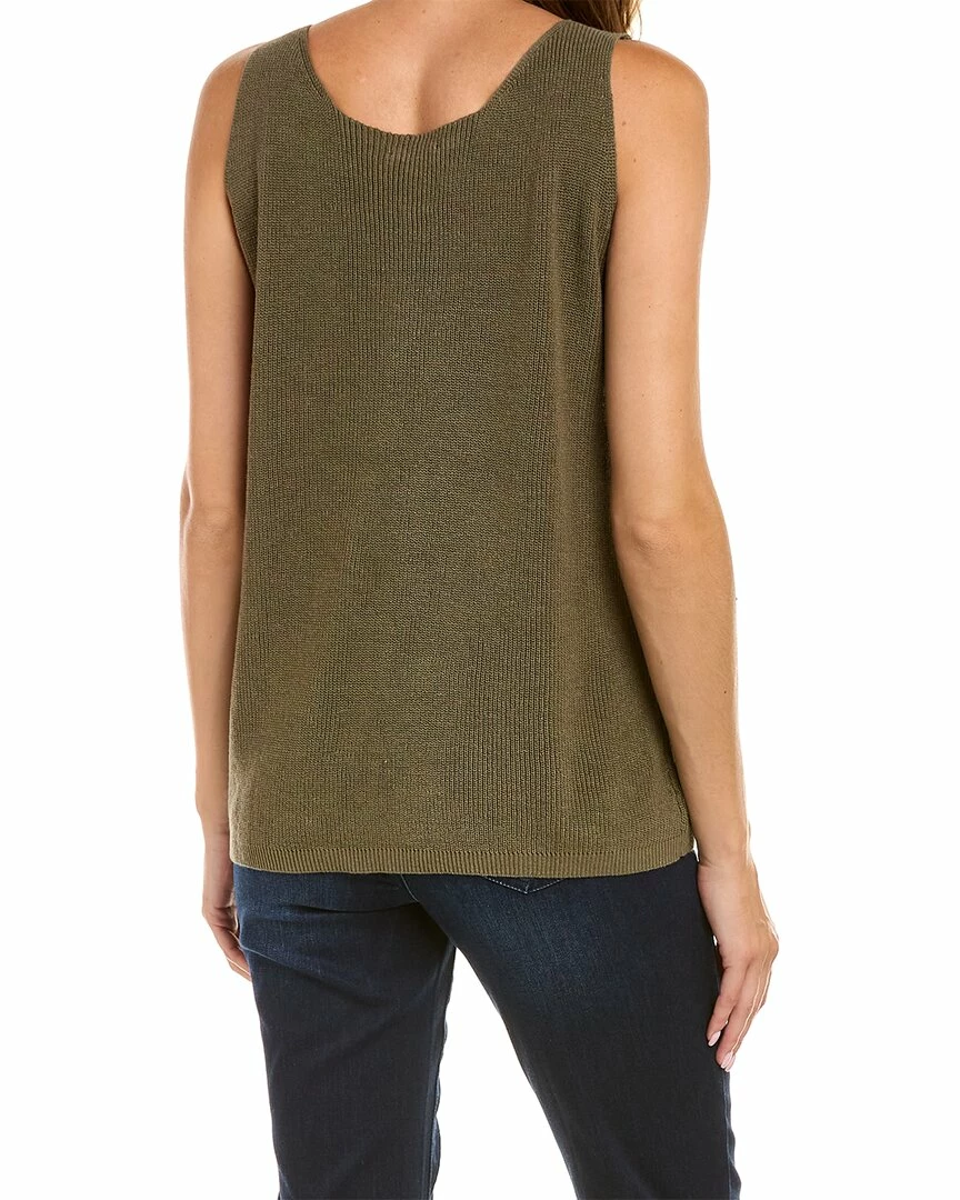 - Relaxed Linen-Blend Sweater Tank in moss with V-neck