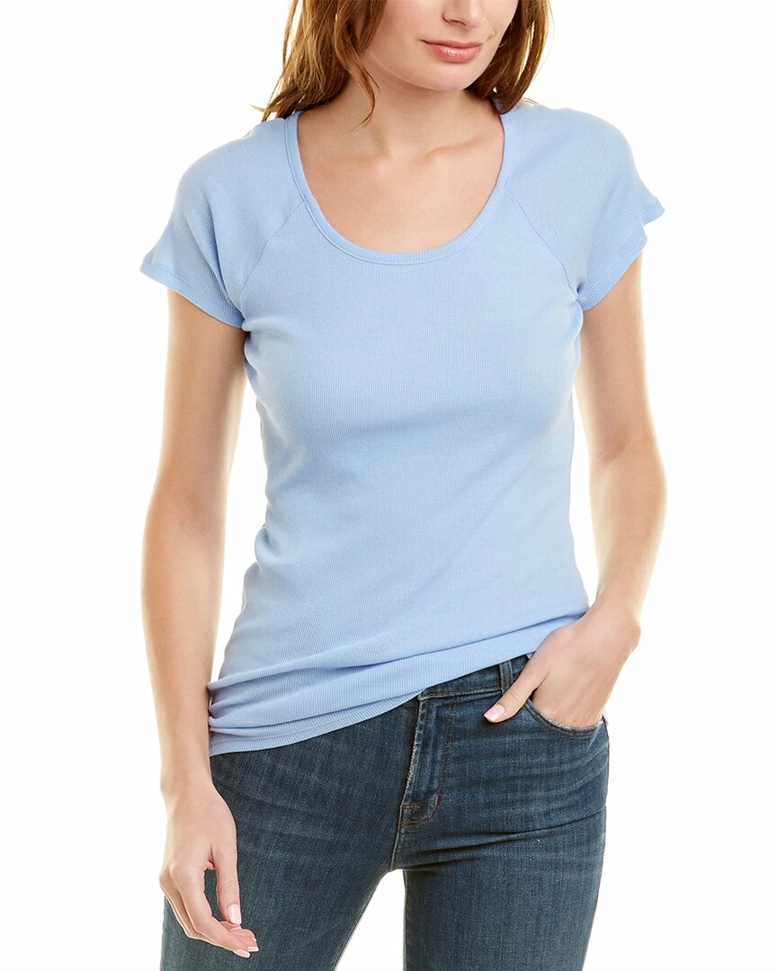- Ribbed Raglan Crew T-Shirt in sky glow