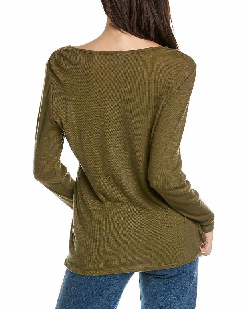- Ribbed Scoop Neck T-Shirt in moss